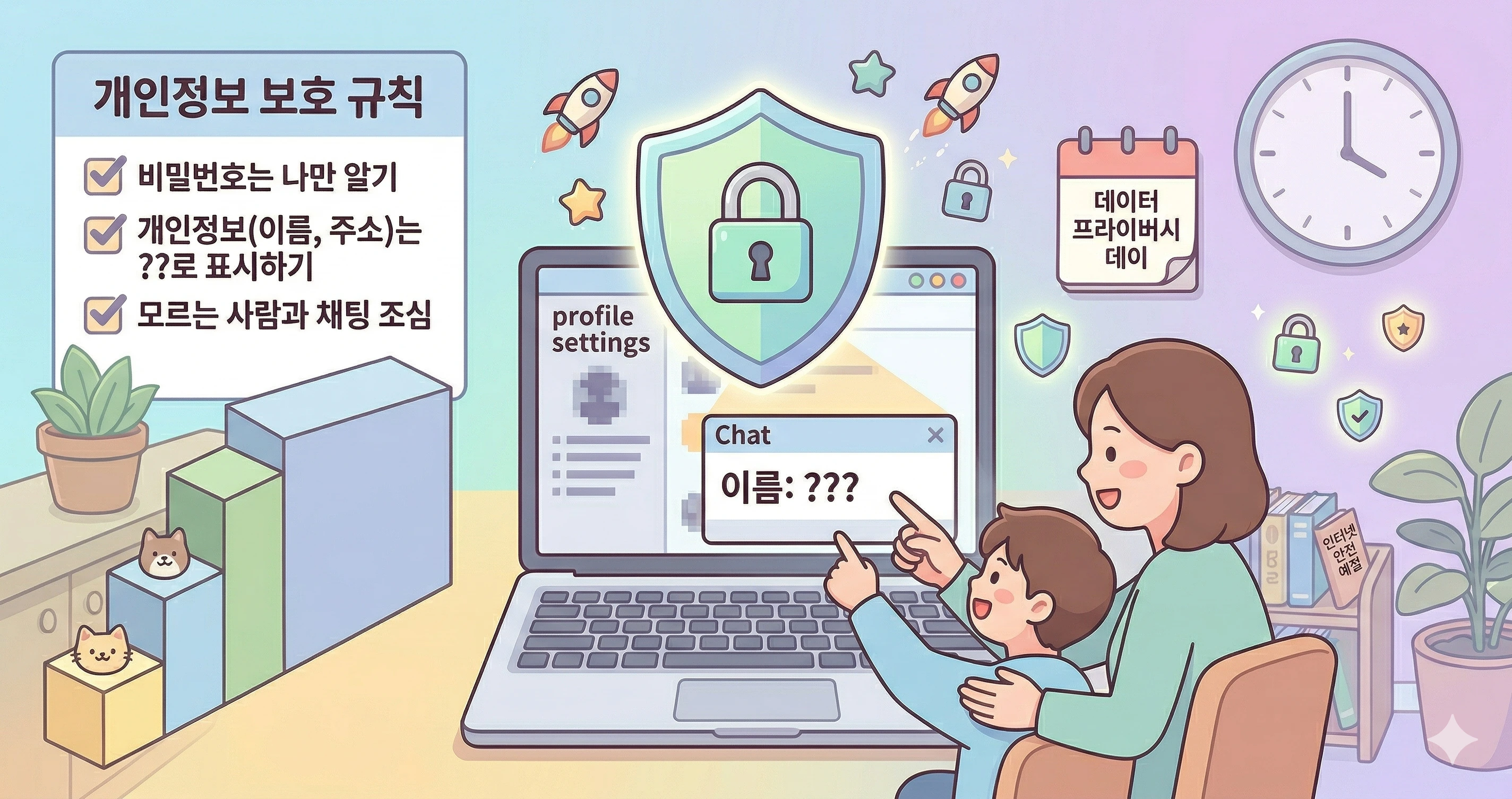 | 초등 저학년 (1~2학년) | 이름/학교 등 개인정보 안 알려주기, 이상한 게 나오면 부모에게 말하기 | 옆에서 같이 사용, 사이트 직접 선택 |